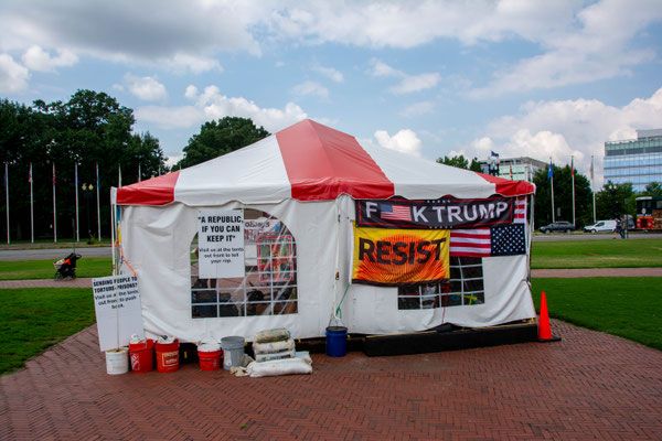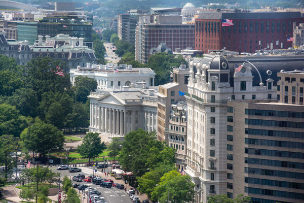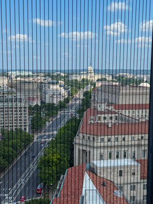 Today is Museum Day. All museums in Washington offer free admission. You just need to get a timed ticket online beforehand. First, we go to the Holocaust Museum. It's really well done, but also very depressing to see this dark chapter of German history presented in such detail. On the way to the USA-Africa Museum, Karin trips over a bump in the sidewalk and falls very hard. Her glasses are broken, she has a black eye, and her cheekbone, shoulder, and elbow are pretty badly bruised. Of course, we immediately sued the city for a million dollars in damages. We then went to the USA-Africa Museum, where Karin was bandaged up. I visited the USA-Africa Museum, which depicts the history of slavery over 500 years, on my own while Karin rested. From there, we went to the Air & Space Museum. Unfortunately, we couldn't get tickets for it. All the appointments for that day were already fully booked, and the next available slot was not until the following morning. We then took a look at the Waldorf Astoria Hotel Washington from above. There, you can take the elevator up to the former tower of the old post office free of charge and enjoy a 360-degree view of Washington, which, however, is partially obstructed by window bars. After that, Karin felt the need for some rest, so we returned to the campsite in the late afternoon. That was it for Washington. A very fascinating city with a lot of American history that is definitely worth a visit, even at 35 degrees Celsius.