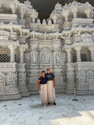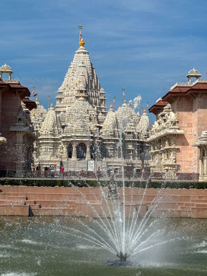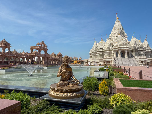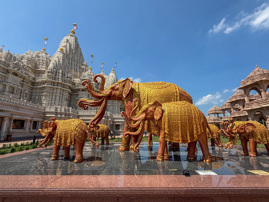 Anneliese takes us on a sightseeing tour. In the middle of quiet Robbinsville, New Jersey, stands a building that looks as if it has been transported here directly from India – the Swaminarayan Akshardham Temple. This temple is not only a religious site, but also a symbol of what devotion, community, and vision can achieve. It belongs to the BAPS (Bochasanwasi Akshar Purushottam Swaminarayan Sanstha) and is part of a worldwide network of temples based on the teachings of Bhagwan Swaminarayan. But what makes it special is that it is the largest Hindu temple outside India – and was largely built by volunteers.