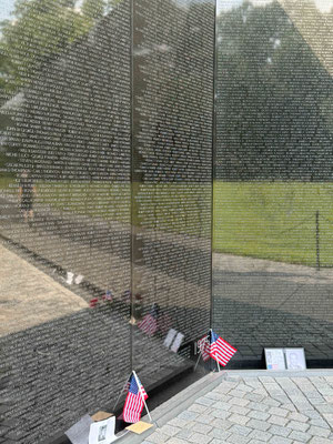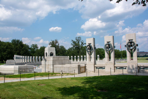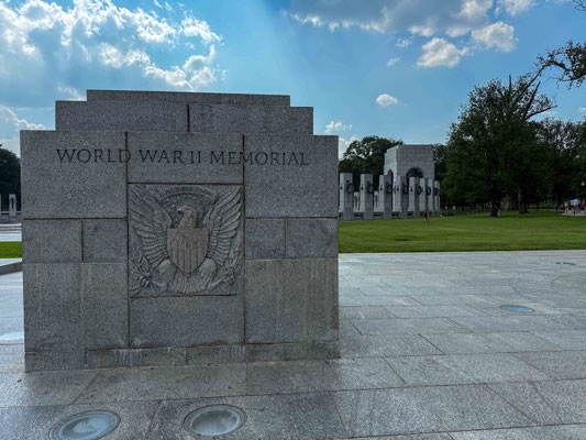 By early afternoon, we are already at our campground in Washington. We take a taxi to the nearest metro station, and from there it takes us just over 30 minutes to reach the city center. We take a long walk along the National Mall, the heart of the city. The Washington Monument, a 169-meter-high obelisk, is hard to miss, and the World War II Memorial is an impressive monument dedicated to the more than 400,000 US soldiers who died in the war. The same goes for the Vietnam War Memorial, where the names of more than 58,000 missing or killed soldiers are listed chronologically. A few hundred meters further on is the Lincoln Memorial with its 175-ton statue of Abraham Lincoln. Then it's on to the White House. Of course, this is a must-see when you're in Washington. When else would you get the chance to see a real Secret Service agent up close? And a stroll down Pennsylvania Avenue is also a must. After a good 10 km walk in 35-degree heat, we are slowly exhausted and stop for a bite to eat in a nice pub before taking the metro back to the campground.