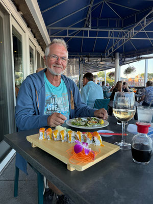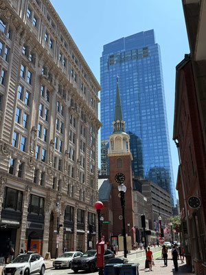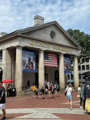 But we're not here for the witches, we're here because the city is a good base for visiting Boston. At ten in the morning, the ferry takes us directly to the center of Boston at Long Wharf in just under an hour. From there, we continue on to Quincy Market with its food stalls and fresh lobster on offer everywhere. Finding your way around Boston is very easy. Just follow the Freedom Trail, a 5 km long red line that runs through the city and leads you to all the sights. Passing historic buildings such as the Old State House, we head to the Italian quarter where we enjoy a delicious lunch and toast Manfred's birthday with a glass of wine. In the afternoon, we continue to “balance” along our red line through Boston Common and on to Beacon Hill, with its pretty brick houses and narrow streets. In the evening, we take the train back to Salem from North Station. Yesterday, we had already picked out a nice seafood restaurant at the harbor for Manfred's birthday dinner with oysters, sushi, and good wine.