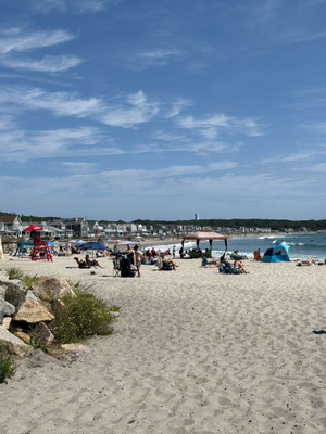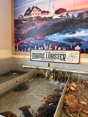 Then we had the idea that a day at the beach would be a good plan, and we set off along the coast in high spirits. There are plenty of beaches there, but getting there with MOMO is a challenge. As is the case in beautiful areas all over the world, everything here is built up to the last meter and privately owned. We managed to get within 200 meters, but the parking lot with overnight stay and parking until the next evening would cost $90. We didn't like our beach idea so much anymore, so we changed our plans and ended up at the Apache Campground in Sanford, Maine, located on the shores of picturesque Estes Lake. For a mere $65/night, we had a nice spot in the woods with a fire pit and lakefront location. However, you had to insert a few coins to take a shower and follow strict rules, see picture. Yes, the New England states have prices that make you long for the western United States. After two relaxing days, we continue on to Winslow Memorial Park Campground near Freeport, Maine. On the way there, lobster rolls are offered everywhere, which tastes delicious.