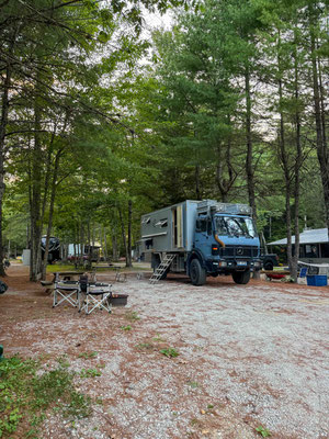 We leave New Jersey and cross Massachusetts to Vermont, the smallest state in the US with an area of 24,000 square kilometers and one of the first states to abolish slavery. The Green Mountain National Forest and the Green Mountains dominate the landscape, and there are plenty of opportunities for free camping. However, the locals are also aware of this, as we painfully discover after traveling dozens of kilometers on forest roads. Finally, we find a free spot in front of a sign that says “no trespassing.” We had a bad feeling about it, and sure enough, it turned out as we expected. After an hour of relaxation, a Jeep pulls up and someone explains to us that this is private property. We strike up a conversation and complain that all the spots are full and we couldn't find anything. In the end, we are allowed to drive onto his property and stay there as long as we want. After the hustle and bustle of the big cities, this is a place right up our alley, and we thoroughly enjoy the peace and solitude for a few days.