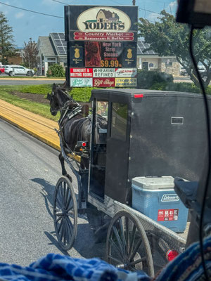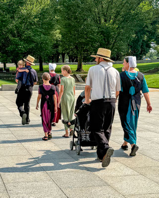 We continue north to Pennsylvania. This is Amish country, and every now and then you come across a horse-drawn carriage, for which there are even special traffic signs, or you meet a farmer driving a tractor without rubber tires.